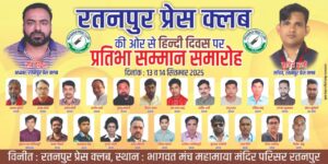 रतनपुर।हिंदी भाषा की गरिमा को नमन करते हुए और क्षेत्रीय प्रतिभाओं को प्रोत्साहित करने के उद्देश्य से प्रेस क्लब रतनपुर...