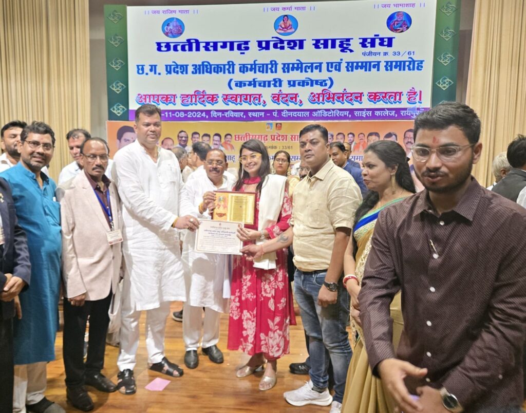 साहू समाज के द्वारा डॉक्टर आकांक्षा साहू”समाज गौरव रत्न अलंकरण””से सम्मानित किया उपमुख्यमंत्री साव