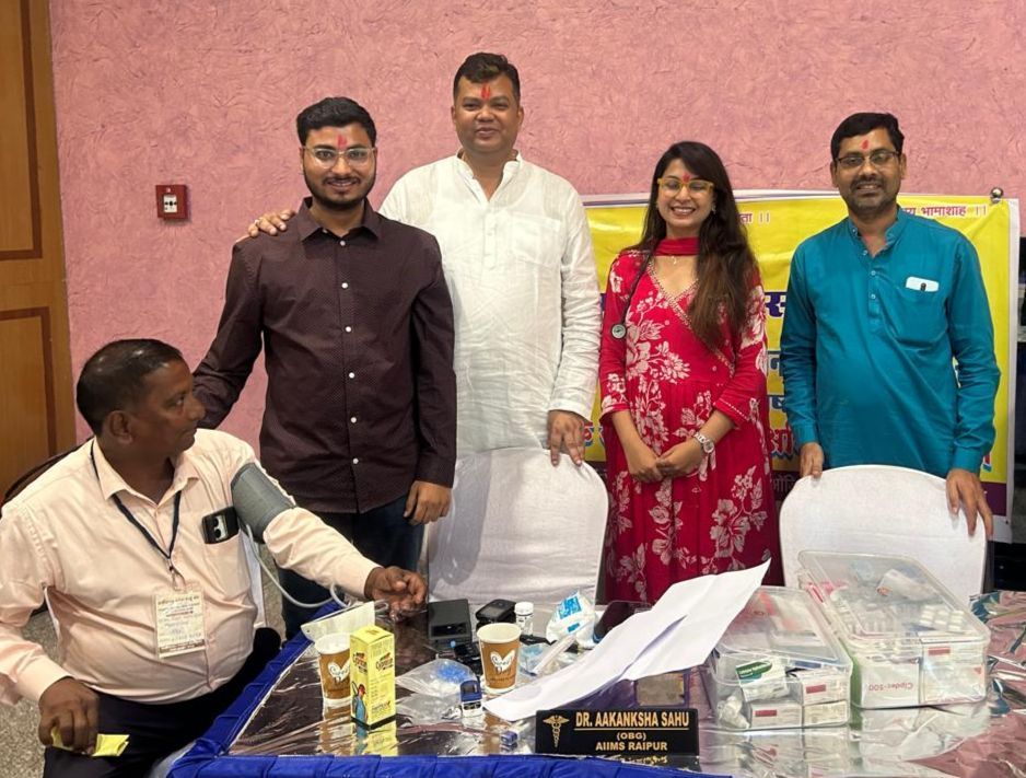 डा आकांक्षा साहू एवं डॉ यशस्वी साहू डॉ क्षितिज साहू द्वारा कार्यक्रम स्थल ऑडिटोरियम में निशुल्क का स्वास्थ्य सेवा शिविर हेल्थ कैंप लगाया गया जिसमें 218 लोगों अपने स्वास्थ्य परीक्षण का लाभ लिया इस स्वास्थ्य परीक्षण में साजा के विधायक ईश्वर साहू बेमेतरा की विधायक दीपेश साहू राजिम के विधायक रोहित साहू धमतरी ओंकार साहू कसडोल के विधायक संदीप साहू एवं पूर्व मंत्री ताम्रध्वज साहू ने भी अपना हेल्थ चेकअप कराया और सभी ने डॉक्टर आकांक्षा साहू को बहुत ही प्रशंसा कार्य करके सहाराना किये