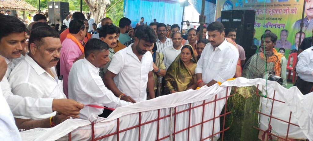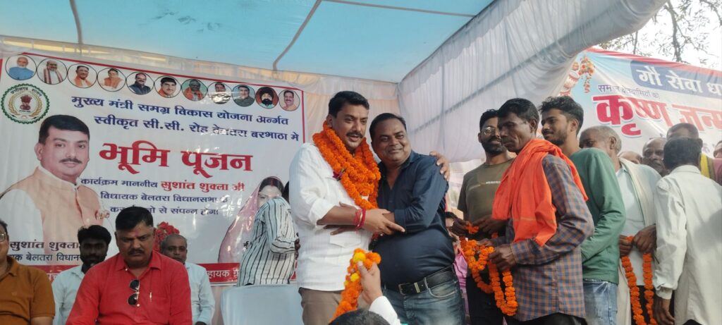 ग्राम पंचायत बेलतरा के बरभाठा में बेलतरा विधायक सुशांत शुक्ला ने सी,सी,रोड, समुदाय भवन, संस्कृति मंच एवं अन्य कार्यों का किया लोकार्पण