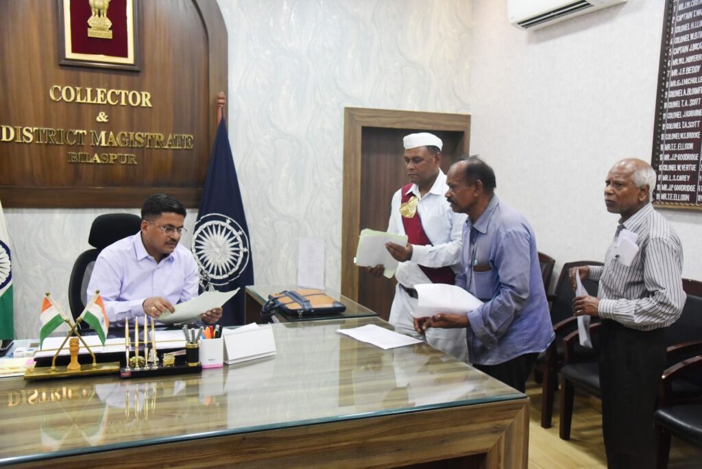बिल्हा ब्लॉक के ग्राम पंचायत चोरहा देवरी की संरपंच ने स्कूल में पदस्थ श्री भूपेन्द्र बंजारे का अन्यत्र ट्रांसफर करने की मांग की। बेलतरा तहसील के लखराम गांव निवासी श्रीमती चंडीबाई ने जमीन पर अवैध कब्जा करने की शिकायत की। ग्राम मोहरा निवासी श्री देवी लाल रजक 13 वर्षाे से तेंदूपत्ता कार्यालय वनविभाग के गोदाम में चौकीदार के पद पर कार्य कर रहे है। उन्होंने कलेक्टर से गुहार लगाई है कि पारिवारिक समस्याओं को देखते हुए उन्हे चौकीदार पद से नहीं निकाला जाए। कलेक्टर ने इस आवेदन को डीएफओ को भेजते हुए आवश्यक कार्रवाई करने के निर्देश दिए हैं।