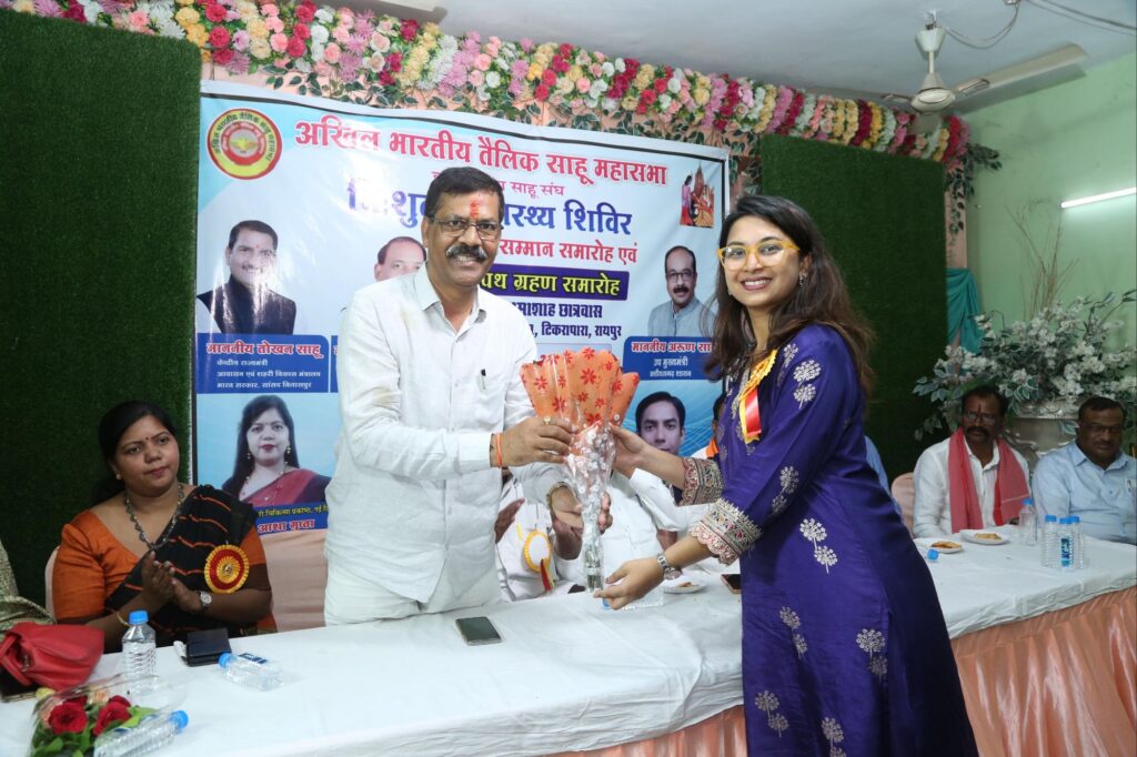 अखिल भारतीय तैलिक साहू महासभा एवं छत्तीसगढ़ प्रदेश साहू संघ के तत्वाधान में निशुल्क स्वास्थ्य शिविर एवं प्रतिभावान छात्राओं का सम्मान छत्तीसगढ़ की राजधानी रायपुर के भामाशाह साहू छात्रावास टिकरापारा में जिसमें भक्त माता करवा मंदिर में पूजा अर्चना कर कार्यक्रम का प्रारंभ किया