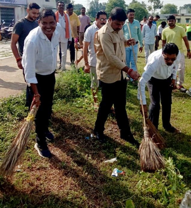 विधायक सहित जनप्रतिनिधियों ने की हाईस्कूल मैदान की सफाई स्वच्छता पखवाड़ा, स्वच्छता ही सेवा अभियान में जुड़े ग्रामीण ।