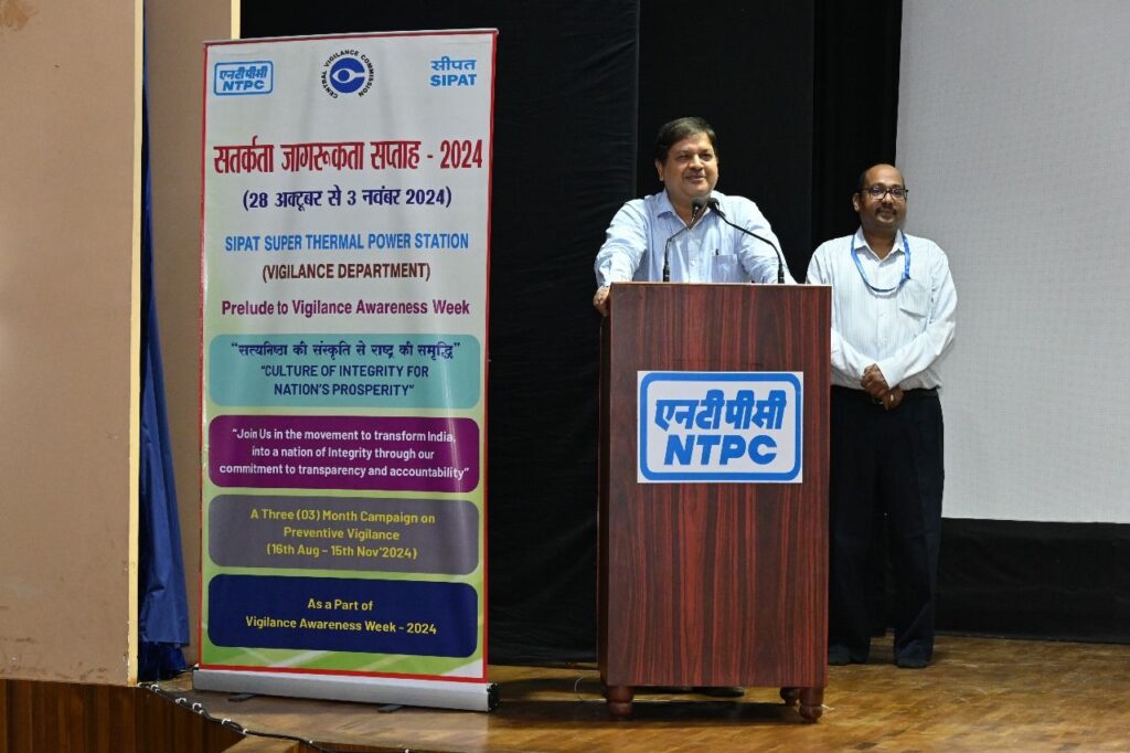 एनटीपीसी सीपत में सतर्कता जागरूकता सप्ताह का शुभारंभ 28 अक्टुबर 2024 से 03 नवंबर तक आयोजन किया जा रहा है