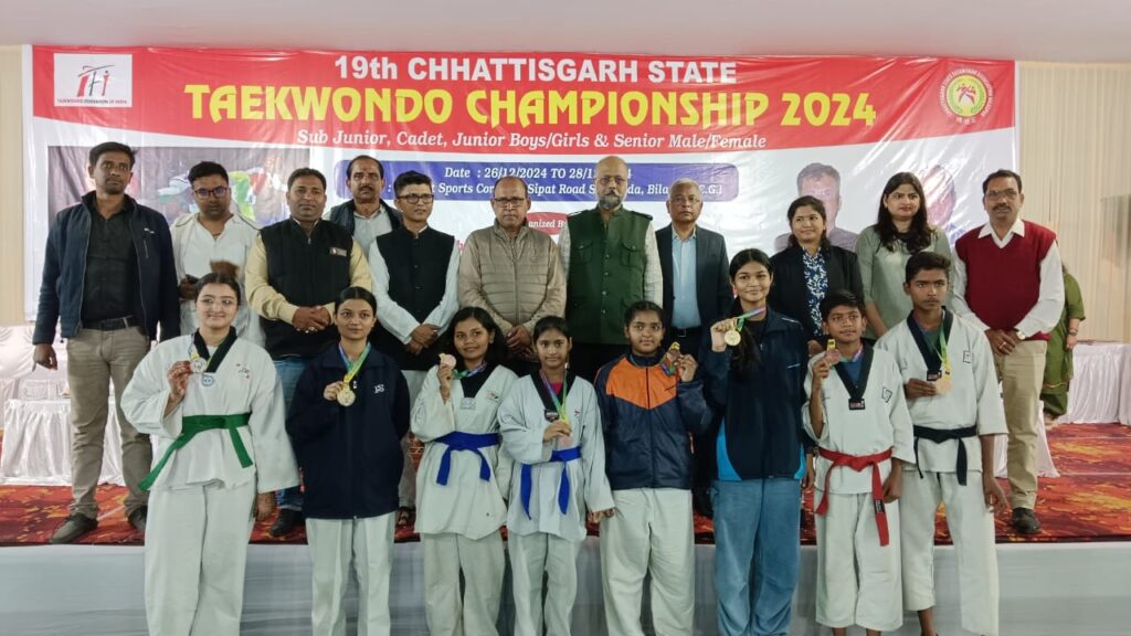 19 वी छत्तीसगढ़ राज्य स्तरीय ताइक्वांडो प्रतियोगिता के पदक वितरण समारोह सम्पन्न,140 खिलाड़ियों को पदक दिया गया।
