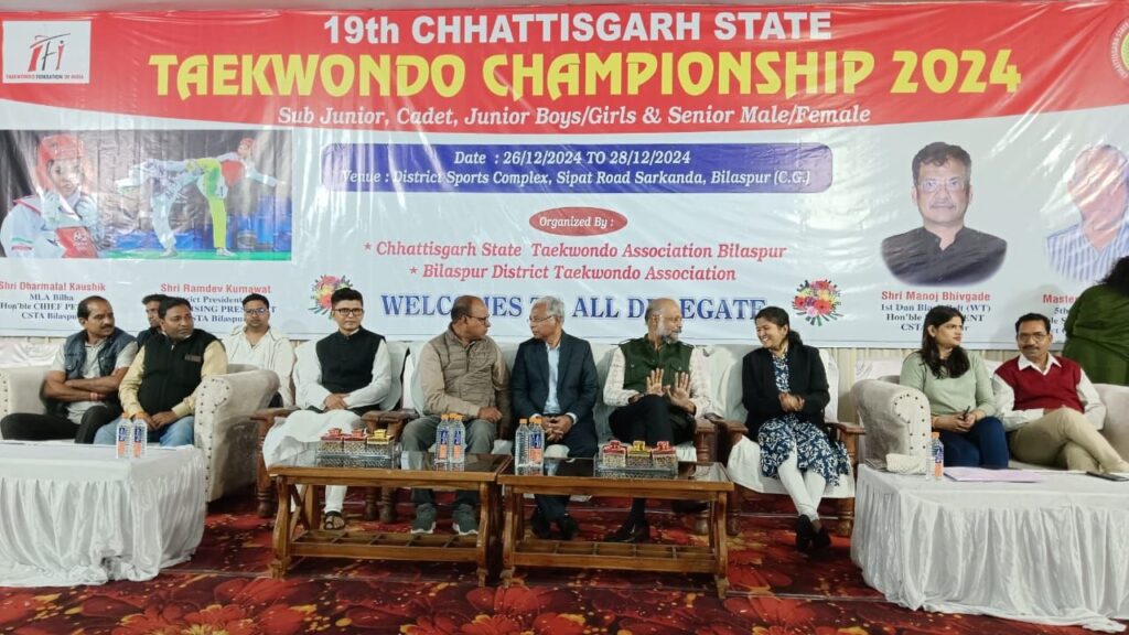 थे। छत्तीसगढ़ राज्य ताइक्वांडो संघ बिलासपुर के महासचिव रामपुरी गोस्वामी ने बताया कि 26 एवं 27 दिसंबर सिनियर महिला/ पुरुष, जूनियर बालक/ बालिका एवं कैडेट बालिका वर्ग के 140 पदक विजेता खिलाड़ियों को स्वर्ण पदक रजत पदक एवं कास्य पदक वितरित किए गए।