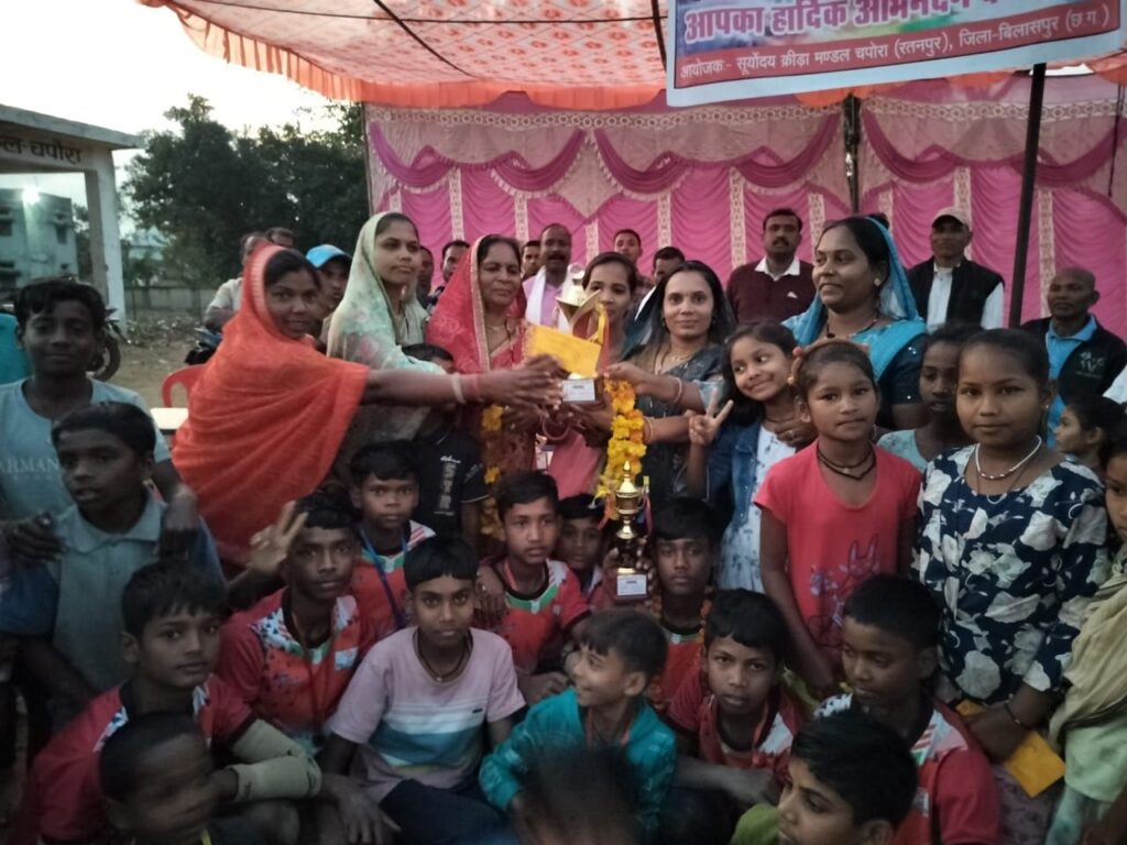।प्रतियोगिता प्रो कबड्डी नियमानुसार खेलाया गया जिसके अॉफिशियल रामकुमार पैकरा , रामकुमार मरावी, गुलाब सिंह श्याम, मोहन चेताम , नंदकुमार धुर्वे, राजू जायसवाल देवगौड़ा, संदीप यादव , लक्ष्मीनाथ आर्मो, मनहरण यादव, तोता आर्मो , शिवकुमार कैवर्त ने मोर्चा संभाला। पुरस्कार वितरण करते हुए मुख्य अतिथि सरपंच गोवर्धन सिंह आर्मो ने कहां कि बाल कबड्डी प्रतियोगिता के माध्यम से किशोर खिलाड़ियों को तराशने का काम द्वितीय वर्ष सूर्योदय क्रीड़ा मंडल ने पूरे संभाग में पहली बीडा़ उठाया है