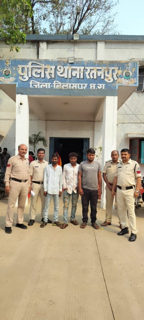 - कि प्रार्थियों की रिपोर्ट पर अपराध कायम कर चोरी गई मशरूका व अज्ञात चोरी की पतासाजी हेतु थाना प्रभारी रतनपुर नरेश कुमार चौहान के दिशा निर्देश पर थाना रतनपुर में टीम गठित कर व मुखबीर लगाकर पतासाजी की जा रही थी। घटना के 02 अन्य आरोपियों को रतनपुर पुलिस द्वारा गिरफ्तार कर न्यायिक रिमाण्ड भेजा गया था। व उक्त आरोपियों की पतातलाश लगातार की जा रही थी। मुखबीर द्वारा आरोपियों के घर में होने की सूचना पर घेराबंदी कर आरोपियों को गिरफ्तार कर न्यायिक रिमाण्ड पर भेजा गया।