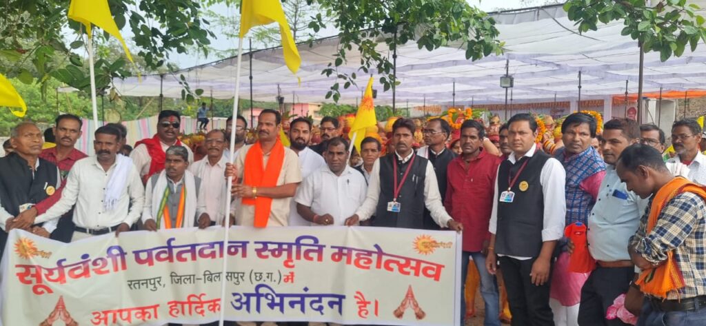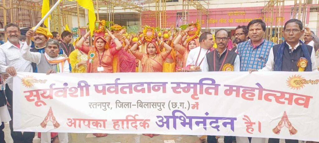 भरारी – सूर्यवंशी पर्वत दान स्मृति महोत्सव का आज शुभारंभ हुआ बुढादेव मंदिर प्रांगण सूर्यवंशी स्थल में पूजा कर कलश यात्रा निकली जो बड़ी बाजार से होते हुए महामाया मंदिर पहुंचा जहां पर महरैया सरोवर से जल भरकर वहां से वापस समारोह स्थल पहुंचा। जहां पर हजारों की तादाद में समाज के महिला पुरुष उपस्थित थे। कलश में यात्रा में प्रमुख रूप से जिला पंचायत अध्यक्ष राजेश सूर्यवंशी, रतनपुर नगर पंचायत के पूर्व अध्यक्ष घनश्याम रात्रे ,सूर्यवंशी