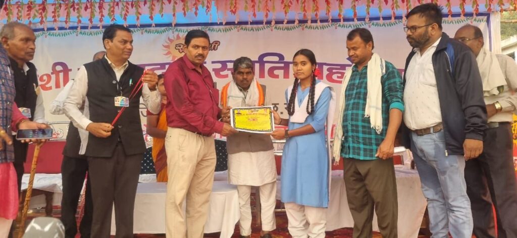 सूर्यवंशी पर्वत दान स्मृति महा महोत्सव में ग्राम परसदा के कुमारी रश्मि सूर्यवंशी को कक्षा 10 वीं में 90% अर्जित करने पर स्वराज कला मंच द्वारा मंचस्थ अतिथियों के हाथों प्रशस्ति पत्र देकर सम्मानित किया गया ।