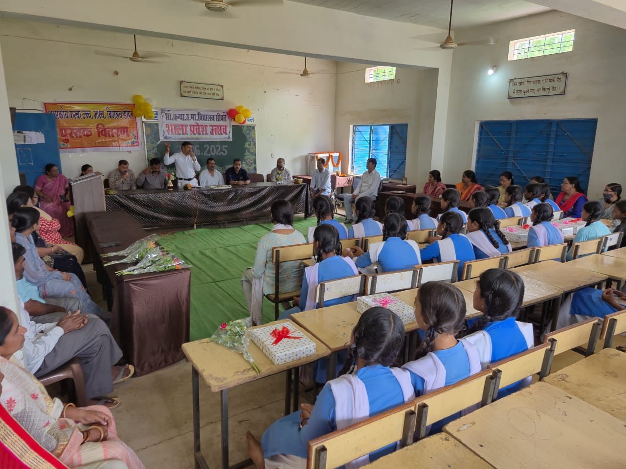 सीपत। शासकीय कन्या उच्चतर माध्यमिक विद्यालय में शनिवार को नए शैक्षणिक सत्र की शुरुआत पर शाला प्रवेश उत्सव बड़े उत्साह के साथ मनाया गया। इस मौके पर बच्चों का तिलक लगाकर और मिठाई खिलाकर स्वागत किया गया। कार्यक्रम में सैकड़ों छात्र छात्राएं, अभिभावक और क्षेत्र के गणमान्य नागरिक शामिल हुए।