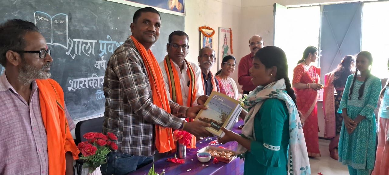 खैरा… विद्यालय में शैक्षणिक गुणवत्ता बढ़ाने के साथ-साथ बच्चों में सत प्रतिशत उपस्थिति सुनिश्चित करने के उद्देश्य से शासकीय हाई स्कूल खैरा में शाला प्रवेश उत्सव मनाया गया।जहाँ नव प्रवेशी बच्चों का तिलक लगाकर और मिठाई खिलाकर स्वागत किया गया। साथ ही उपस्थित अतिथियों द्वारा निशुल्क किताबें प्रदान की गईं।