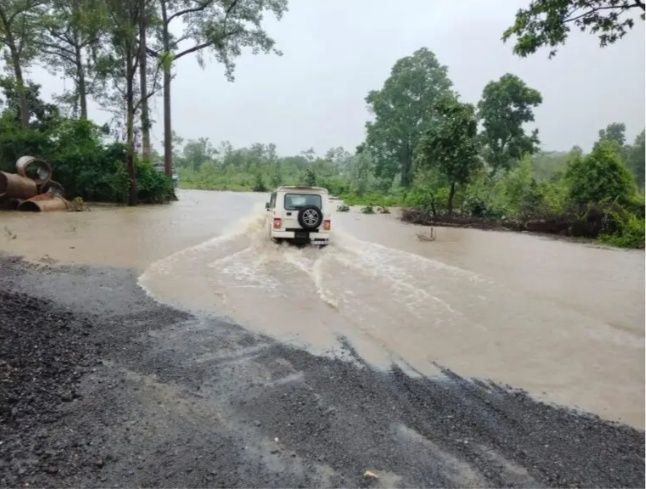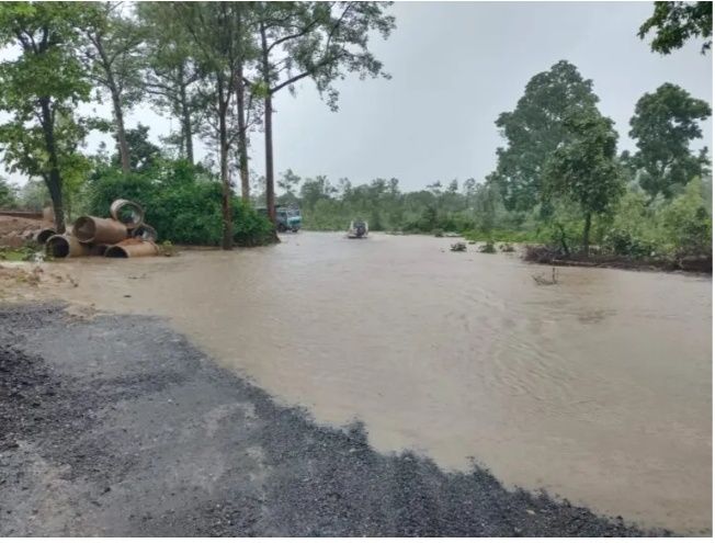 रतनपुर -मंजवानी केंदा मार्ग पर सेमरा मोड़ के पास पानी
