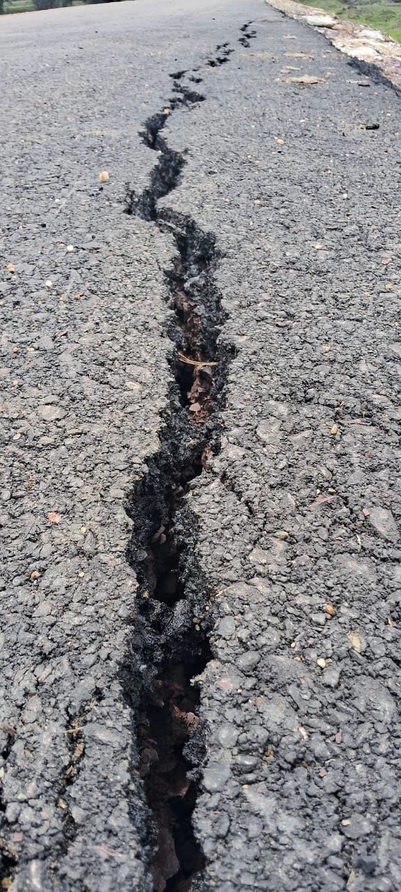 निर्माण प्रक्रिया में बरती गई लापरवाही की वजह से राष्ट्रीय राजमार्ग -45 की सड़क पहली बारिश में ही दम तोड़ रही है , सड़क की बड़ी-बड़ी दरारें अब आंखें खोलें ,न्याय की गुहार लगा रही हैं।
