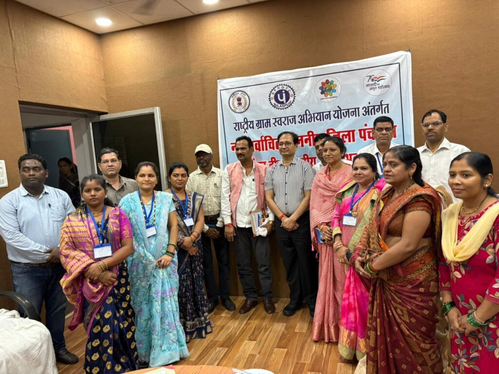 बिलासपुर, 15 जुलाई 2025/नव निर्वाचित जिला पंचायत सदस्यों का आधारभूत प्रशिक्षण कार्यक्रम का आयोजन क्षेत्रिय पंचायत एवं ग्रामीण विकास प्रशिक्षण केंद्र में आयोजित किया जा रहा है ၊ आज इस कार्यक्रम में चाय पे चर्चा में विकसित भारत में पंचायतों की भूमिका व राष्ट निर्माण में पंचायतो की भूमिका विषय में चर्चा की गई ၊ इस कार्यक्रम में विशेष रूप से जिला पंचायत अध्यक्ष श्री राजेश सूर्यवंशी एवं कलेक्टर श्री संजय अग्रवाल उपस्थित हुए ၊