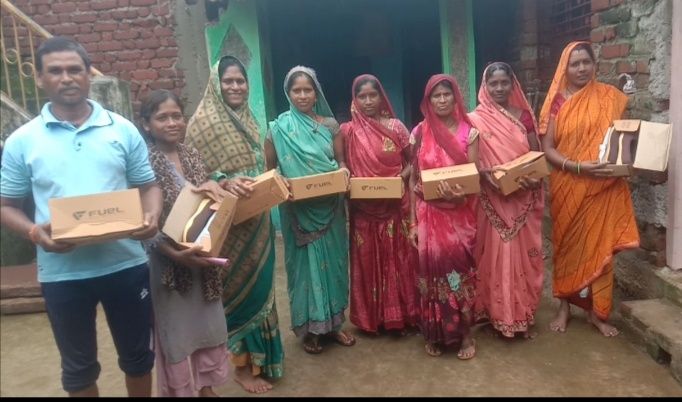 तेंदूपत्ता संग्राहकों को मिला चरण पादुका महिलाओं के खिल उठे चेहरे ।