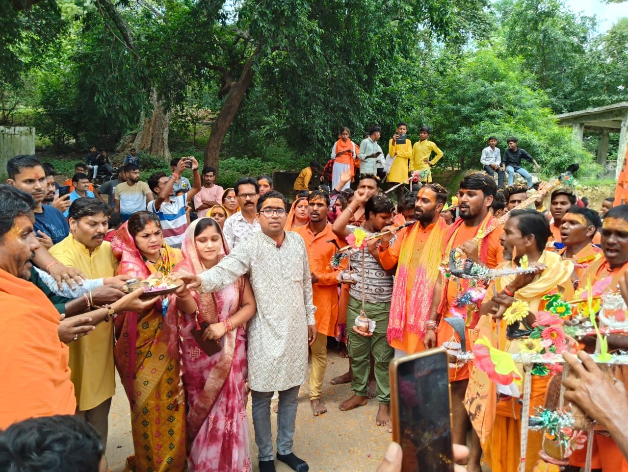 शिव भक्तों का स्वागत करने के लिए जिला पंचायत सभापति अरुना चंद्रप्रकाश सूर्या, जनपद सदस्य अंजलि भास्कर पटेल ने जलाभिषेक करने आए शिव भक्तों पर पुष्प वर्षा कर उनका स्वागत किया