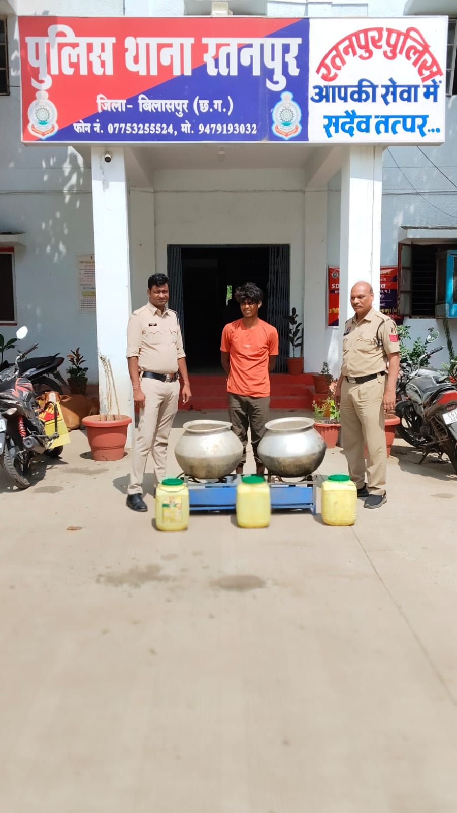 *बिलासपुर-* पुलिस अधीक्षक जिला बिलासपुर रजनेश सिंह (भा.पु.से.) के द्वारा जिले में नशे के कारोबारियों पर लगातार कार्यवाही करने निर्देशित किया गया है। जिसके परिपालन में श्रीमान अतिरिक्त पुलिस अधीक्षक महोदया (ग्रामीण) श्रीमती अर्चना झा एवं अनुविभागीय अधिकारी (पुलिस) कोटा श्रीमती नूपुर उपाध्याय के मार्गदर्शन में थाना प्रभारी रतनपुर नरेश कुमार चौहान के द्वारा नशे के आरोपियों पर लगातार कार्यवाही करने टीम गठित किया गया है। इसी कड़ी में दिनाँक 05/08/2025 को मुखबीर से सुचना मिला कि ग्राम गोंदईया का एक व्यक्ति अपने खेत के पास बने झोपड़ी में भारी मात्रा में कच्ची महुआ शराब रखा हुआ है