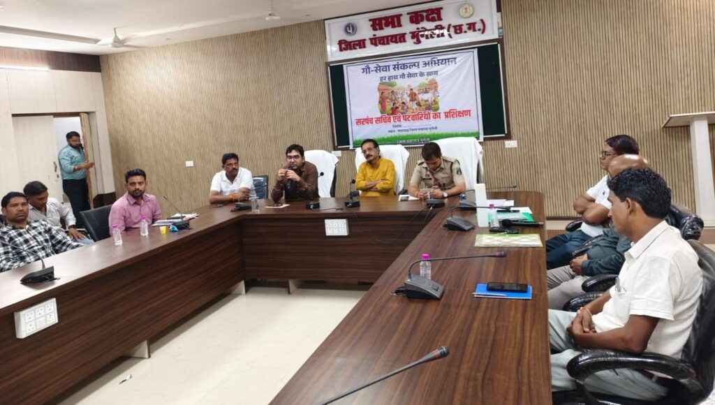 एंकर। मुंगेली, सड़क दुर्घटनाओं में बढ़ती जनहानि और पशुहानि की गंभीरता को देखते हुए कलेक्टर कुन्दन कुमार के मार्गदर्शन में जिले में ‘‘गौ सेवा संकल्प अभियान’’ की शुरुआत की गई है। इस अभियान का मुख्य उद्देश्य बेसहारा एवं सड़कों पर छोड़े गए मवेशियों के बेहतर प्रबंधन, सेवा और संरक्षण को सुदृढ़ करना है। इसी कड़ी में मुंगेली विकासखण्ड के सरपंचों, सचिवों और पटवारियों को गौ सेवा एवं संरक्षण के संबंध में जिला पंचायत के सभाकक्ष में प्रशिक्षण प्रदान किया गया।