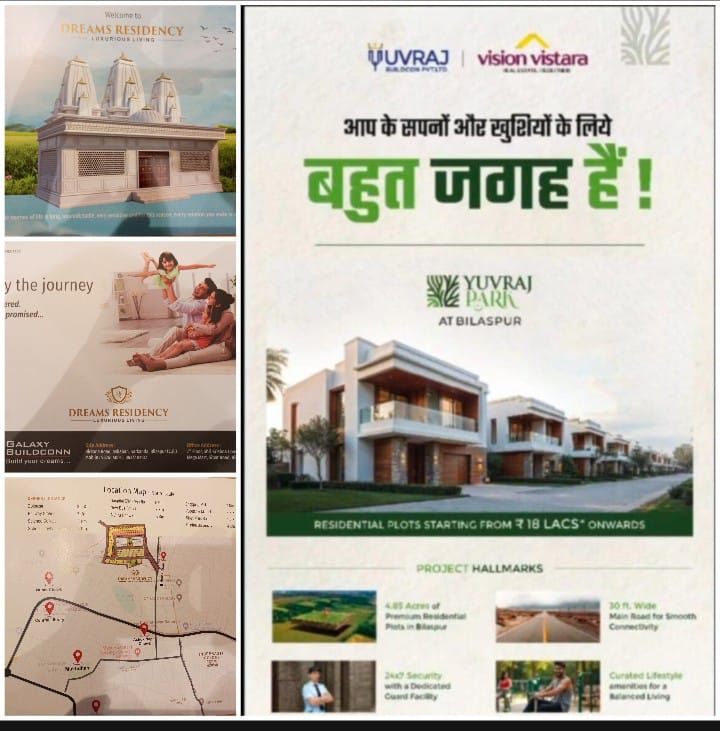 बिलासपुर। मकान बनाने का सपना अब मुश्किल नही ,,मध्यम और सभी तरह के आय वालों के लिए घर और निवेश का सुनहरा अवसर लेकर आया है *विजन विस्तारा ” यहाँ युवराज पार्क जो शहर के उसलापुर, सकरी के पास आशमा सिटी के पीछे पुर्णता विकसित हो रहा है। यहां आपको मिलेगा आपके बजट के अनुरूप सर्व सुविधाओं से सुसज्जित प्लॉट, जो आपके सपनों को साकार करने के साथ-साथ आपके निवेश को भी सुरक्षित बनाएगा।