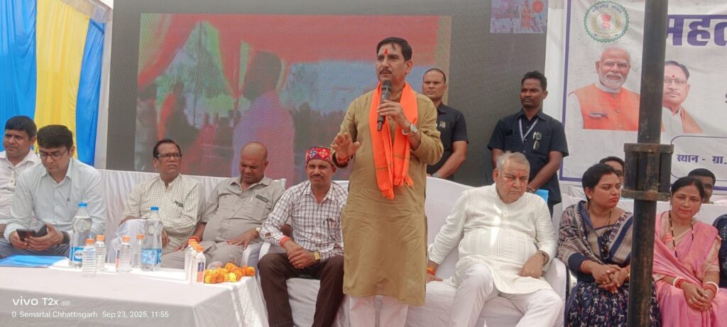 । वे ग्राम सेमरताल में 24.70 लाख में बने महतारी सदन का लोकार्पण करने आए हुए थे। उन्होंने बालोघान समिति के संरक्षक यदुनंदन कौशिक, सरपंच धनित्तर सूर्यवंशी, उप-सरपंच अक्षय कुमार साहू, सुरेन्द्र पान्डेय,सतीश धीवर एवं ग्रामीणों की मांग पर सेमरताल के वार्ड नंबर एक में बालोघान आहाता निर्माण व सौंदर्यीकरण को लिए मंजूरी देते हुए जिला पंचायत के सहयोग से काम कराने की घोषणा की। इस अवसर पर तखतपुर विधायक धरमजीत सिंह ने उपस्थित माताओं, ग्रामीणों को बताया कि भारतीय जनता पार्टी की सरकार बहनों के सम्मान को सर्वोच्च प्राथमिकता देती है। महतारी वंदन, महतारी दुलार इसका प्रमाण है। महतारी सदन आप सबके लिए लाभकारी होगा। अब इसका देखरेख आप लोगों को ही करना है। उद्बोधन से पहले नवनिर्मित महतारी सदन का पूजन किया गया।