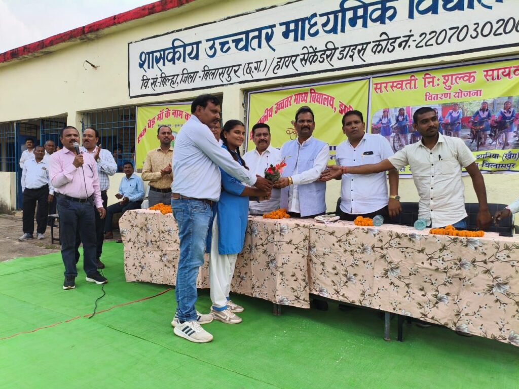 शासकीय उच्चतर माध्य विद्यालय डगनिया में आज दिनांक 14.102025 मंगलवार को कक्षा 9वी को छात्राओं को मुख्य अतिथि राजेश सूर्यवंशी द्वारा छत्तीसगढ़ शासन की मुख्य योजना अंतर्गत सरस्वती निःशुल्क सायकल वितरण प्रदान किया जिसमें हायर सेकेंडरी स्कूल डगनिया के छात्राओं को 33 निशुल्क साइकिल वितरण किया गया।