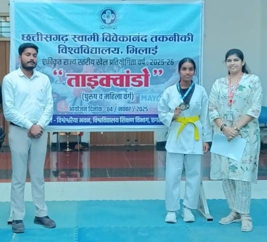 साथ ही आल इंडिया यूनिवर्सिटी ताइक्वांडो प्रतियोगिता के लिए छत्तीसगढ़ स्वामी विवेकानंद तकनीकी विश्वविद्यालय भिलाई की ताइक्वांडो टीम मे जगह बनाई है इनकी गोल्ड मैडल जितने पर संस्था प्रमुख प्रमोद कुमार जैन, उपसंस्था प्रमुख अंकित जैन, एलसीआईटी ग्रुप ऑफ़ इंस्टिट्यूशन सेक्रेटरी उपकार राय, इंजीनिरिंग विभाग उपप्राचार्य शुभी श्रीवास्तव,एलसीआईटी कालेज ऑफ़ कॉमर्स एंड साइंस प्राचार्य डॉ. अर्चना शुक्ला,