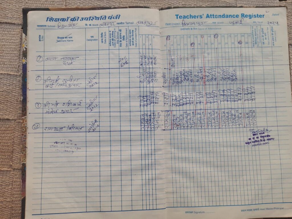 ।जबकि मैं लगातार स्कूल में अपनी ड्यूटी कर रहे थे और अचानक से षड्यंत्र के तहत कुछ लोगों की मिली भगत से प्रधान पाठक ने उन्हें स्कूल में कार्य करने के लिए मना कर दिया साथ ही साथ जिस रजिस्टर में व्यास गेंदले की उपस्थिति दर्ज होती है उस रजिस्टर को भी छेड़छाड़ करने का आरोप प्रधान पाठक पर व्यास गेंदले ने लगाया है हम बता दे की विकास गेंदले और सूत्रों के मुताबिक हमें जानकारी मिली कि प्रधान पाठक के द्वारा अपने उच्च अधिकारियों को यह सूचना दी गई है की व्यास गेंदले डेढ़ साल से अनुपस्थित है जिसकी वजह से उन्हें हटाया जा रहा है जबकि विकास गेंदले ने बताया 4 महीने लेकर 6 महीने में उनका पेमेंट दिया जाता है जो कि उनको मिलते आ रहा है अब सोचने वाली बात यह है की जो आदमी डेढ़ साल से गायब है स्कूल में कार्य में ही नहीं आता है उन्हें शिक्षा विभाग पेमेंट किस बात की देरी है। प्रधान पाठक के द्वारा यह पूरा मुद्दा षडयंत्र पूर्वक निपटाया जा रहा है ऐसा प्रतीत होता है।
