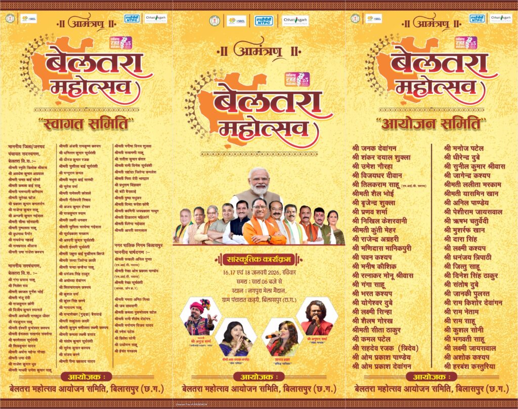 जिले में पहली बार बेलतरा महोत्सव का भव्य आयोजन,16 से 18 तक चलने वाले सांस्कृतिक आयोजन में जुटेंगे प्रदेश दिग्गज कलाकार
