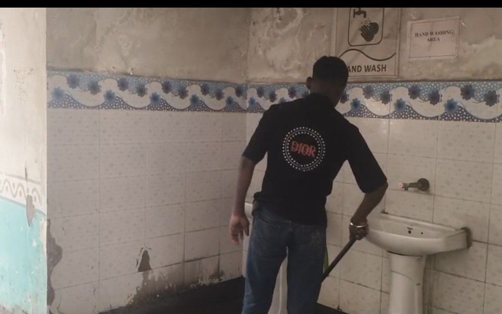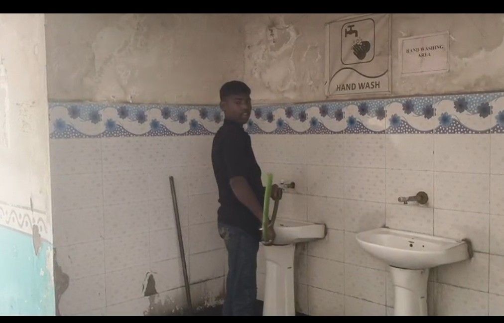 सीजी नर्सिंग काॅलेज भरनी परसदा में सफा -सफाई के कार्य करते बाल मजदूर ।