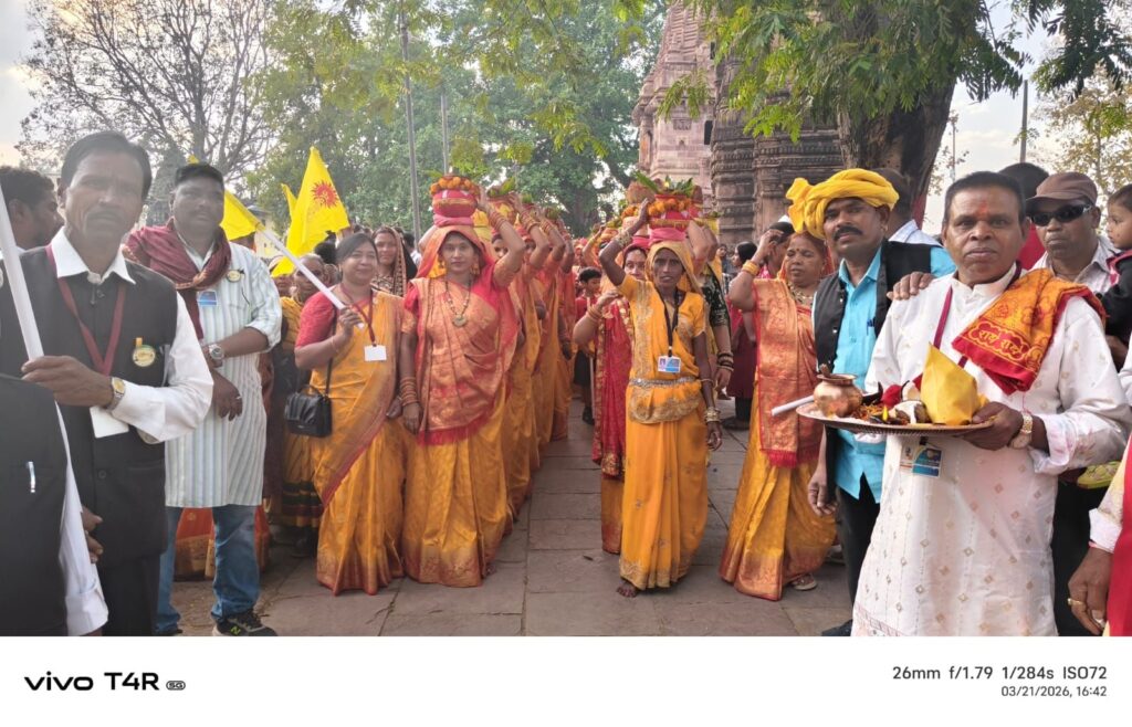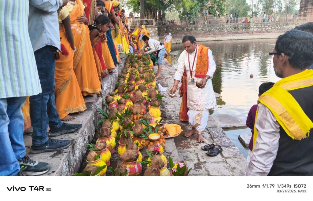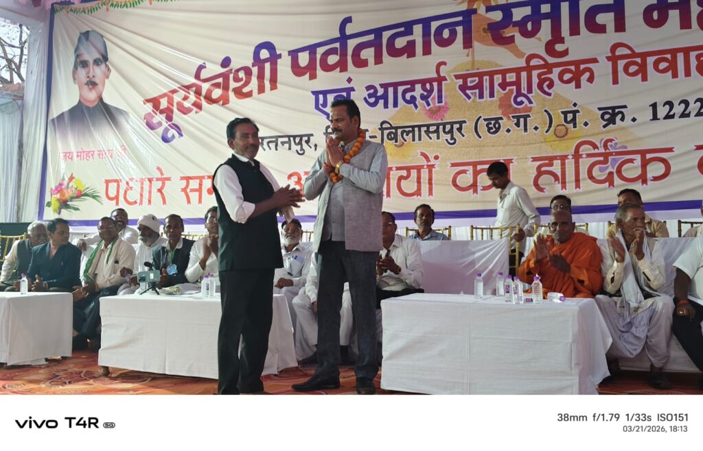 भरारी – ऐतिहासिक धर्म नगरी रतनपुर में सूर्यवंशी समाज के पूरोधाओं द्वारा सूर्यवंशी पर्वत दान किया गया था इस पुण्य कार्य के स्वर्णिम याद में स्वराज कला मंच रतनपुर द्वारा सूर्यवंशी पर्वत दान स्मृति महोत्सव के रूप में दो दिवसीय मेले का आयोजन सूर्यवंशी पर्वत दान स्मृति महोत्सव 2026का आज प्रथम दिवस 21 मार्च 2026 को उद्घाटन समारोह के रूप में भव्य शोभा यात्रा में 201 कलश निकाली गई जिसमें 1100 के लगभग माताएं बहने मौजूद रहे तथा समस्त सूर्यवंशी समाज के लोग बड़ी संख्या में शामिल हुये। यह भव्य कलश यात्रा बूढ़ा महादेव प्रांगण सूर्यवंशी समाज यज्ञ स्थल से बड़ी बाजार होते हुए मां महामाया मंदिर स्थल कुंड से जल भरकर पुनः महामाया मंदिर से होते हुए वापस रतनपुर का भ्रमण करते हुए समाज के पुरखा द्वारा आयोजित रचित सूर्यवंशी पर्वत दान स्थल में लाया गया।